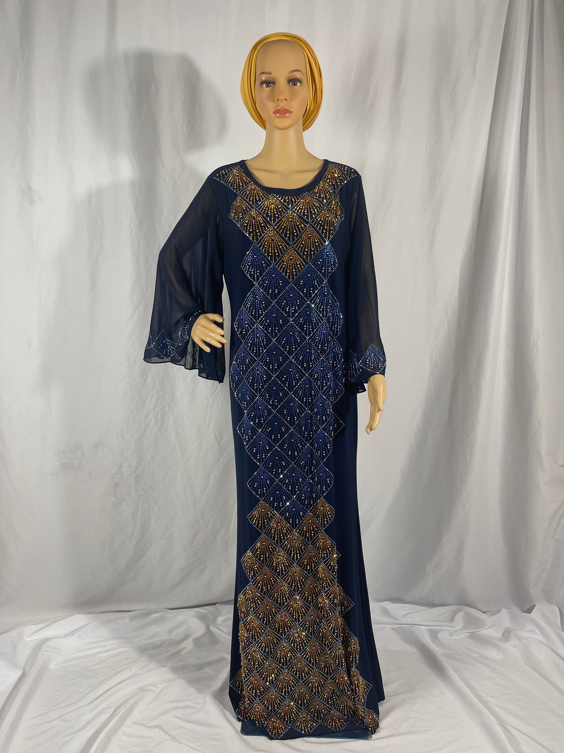 Blue Kaftan with Rhinestones, Maxi Long Stretch Kaftan.